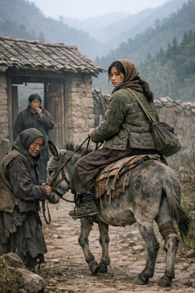 Tôi ngồi trên lưng lừa ngoái đầu nhìn lại, mẹ tôi đứng ở cổng sân cắn hạt dưa, mí mắt cũng chẳng buồn nhấc lên.