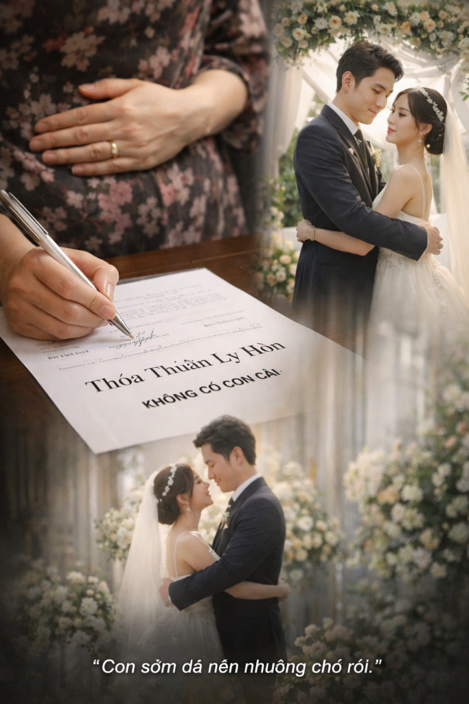 Trên giấy thỏa thuận ly hôn viết “không có con cái”, tôi đặt tay lên bụng dưới rồi ký tên.