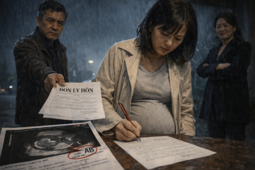 Lục Bách Đình ném một tờ siêu âm trước mặt tôi, trên đó dùng bút đỏ khoanh một dòng chữ — nhóm máu của thai nhi: AB.