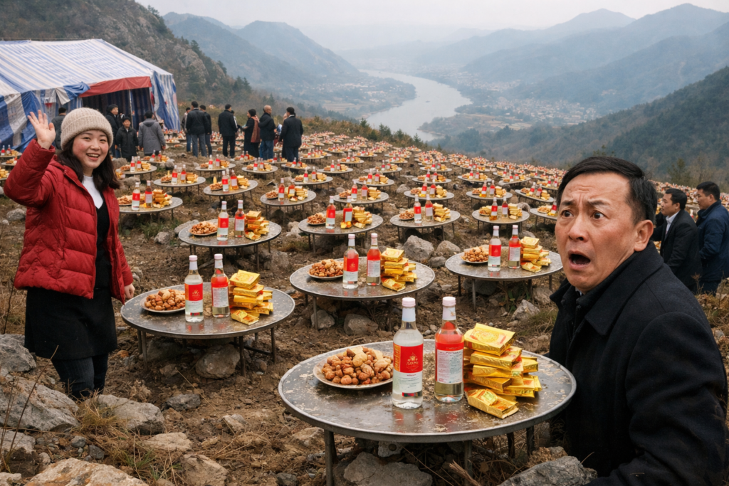 “Tiêu chuẩn mỗi mâm: hai chai rượu trắng Nhị Oa Đầu, một đĩa lạc rang, một xấp tiền vàng mã.”